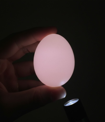 Hãy đưa trứng lên soi dưới bóng đèn hoặc ánh nắng. Trứng mới có buồng khí nhỏ, lòng đỏ tròn và nằm ngay giữa, lòng trắng trong suốt. Trứng cũ thì buồng khí lớn, lòng đỏ dễ di chuyển và có thể xuất hiện vân đỏ.