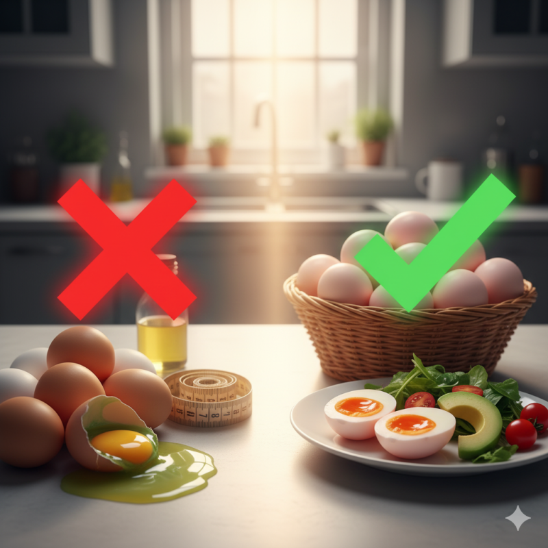 Raw eggs contain avidin, a type of protein that blocks the absorption of biotin (vitamin B7) – essential for hair, skin, and energy metabolism.