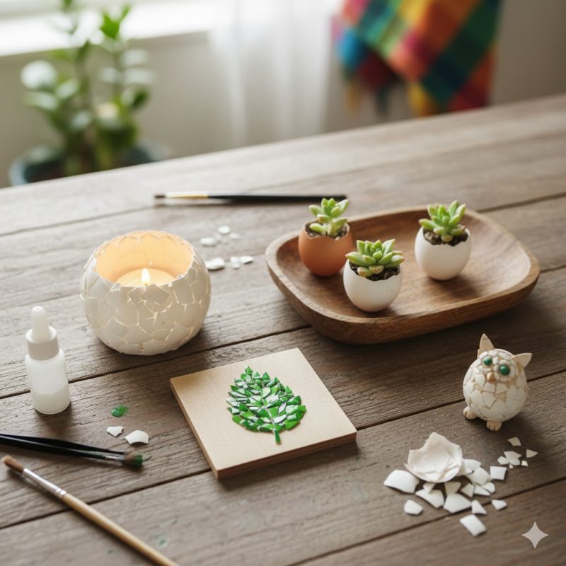 Place them in an egg tray – both beautiful and eco-friendly environment. - Mosaic Art from Eggshells: