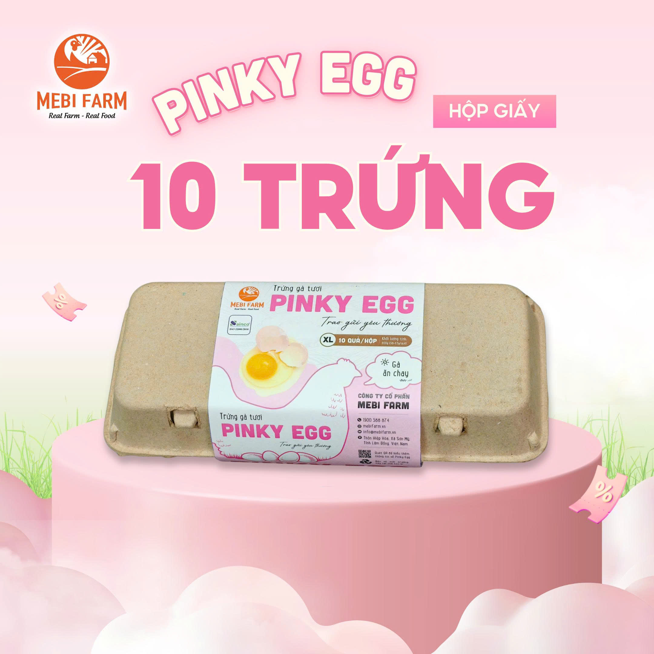 Trứng gà Pinky Egg hộp 10 quả nhãn hồng